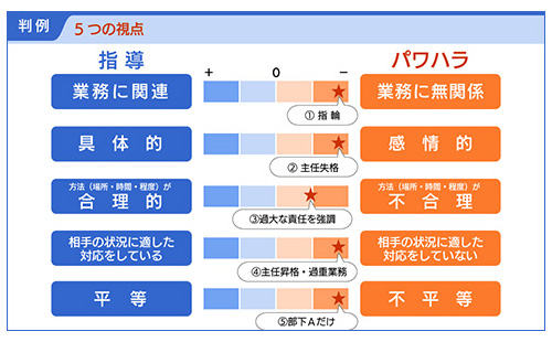 弁護士監修のもと、改正労働施策総合推進法(パワハラ防止法)に対応し、実際の事例をリアルに再現したケーススタディでハラスメントのグレーゾーンや境界線について理解を深めることができます。また、図式化された判例解説は多くの受講者から好評をいただいています。