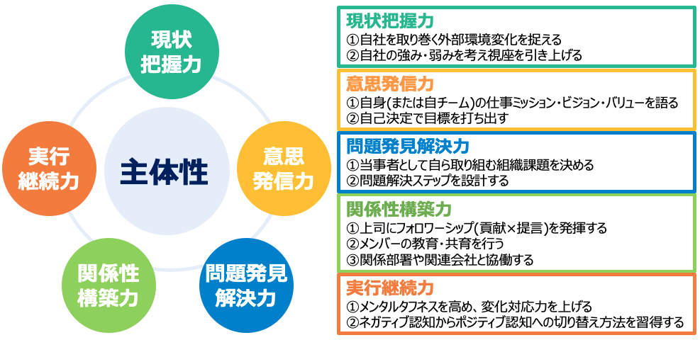 現状把握×意思発信×問題発見解決×関係性構築×実行継続