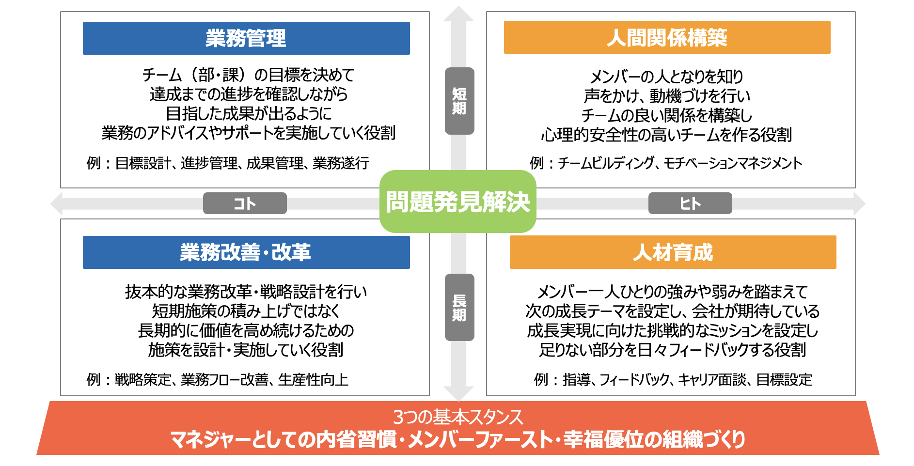 - 業務管理力・業務改善改革力・人間関係構築力・人材育成力を磨き、マネジャーの基本役割であるヒトとコトの問題発見解決スキルを高めます。