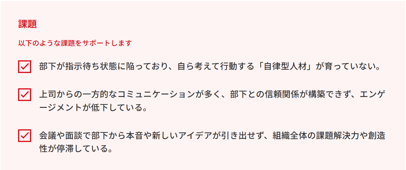 この課題を「コーチング」という側面から支援します。