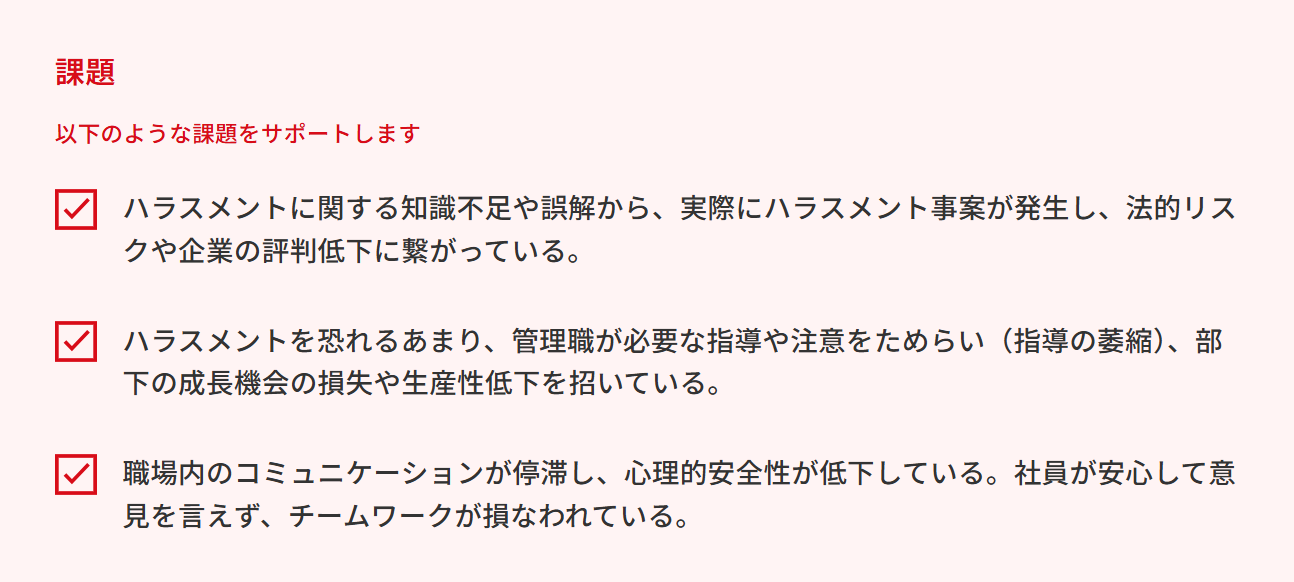 しかし、世の中のハラスメント研修の多くは、ハラスメントのリスクや罰則を一方的に伝え続けることで、この「指導の萎縮」という深刻な状態をかえって悪化させているのが現状です。