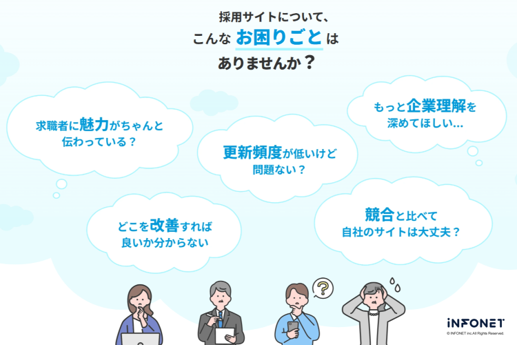 採用サイトについて、「どこを改善すれば良いか分からない」「競合と比べて自社のサイトは大丈夫?」などのお困りごとはありませんか?