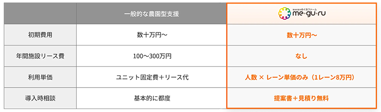 - 1名につき毎月8万円で農園利用が可能。施設リース料はかかりません。