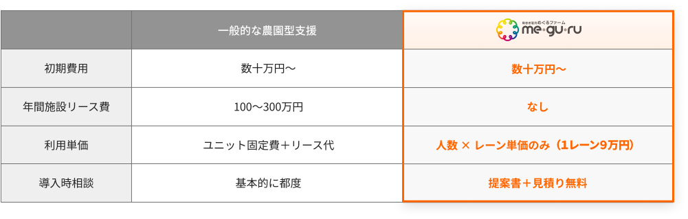 一般的な農園型支援との比較例