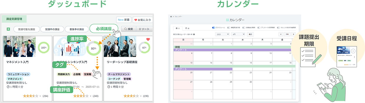 受講者は「いつ・何を」受講すればよいのかを、一目で把握可能