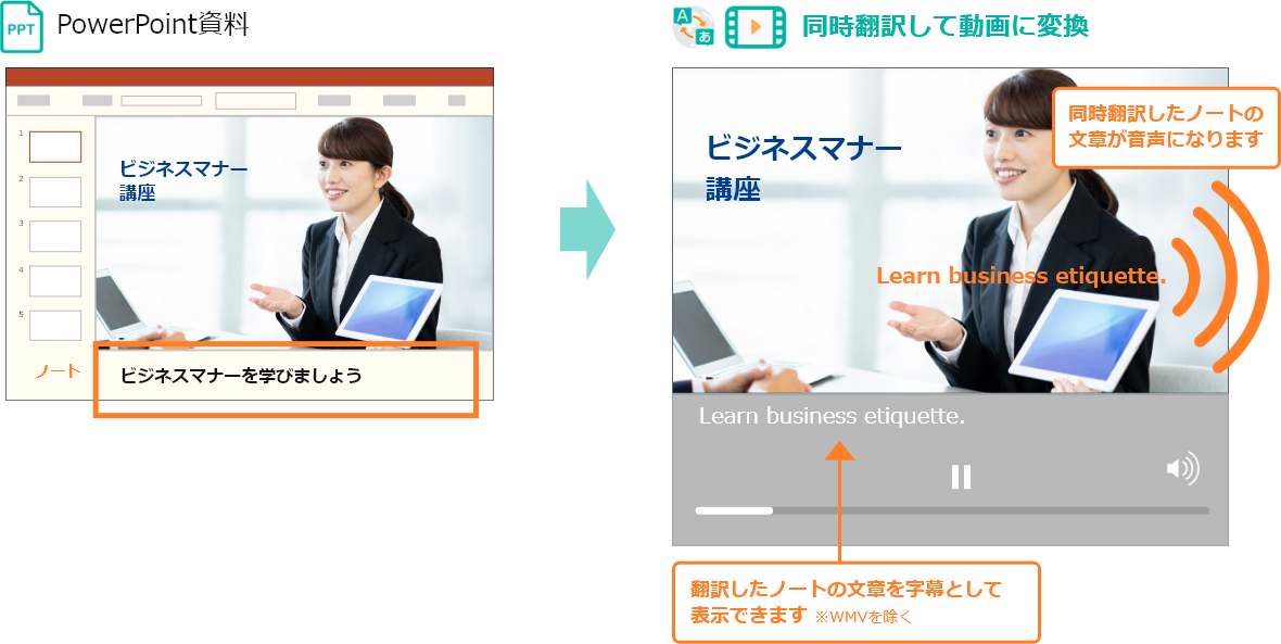 PowerPoint資料から、動画を簡単に作成できる(対応言語:50種類以上)