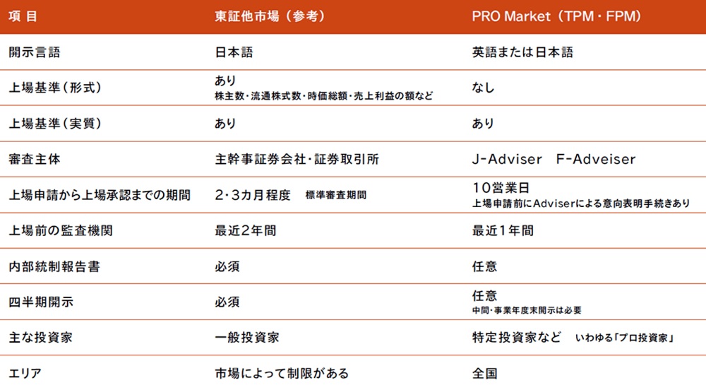 PRO Market は株式市場の一つで、東京証券取引所のTOKYO PRO Market(TPM)と、福岡証券取引所のFukuoka PRO Market(FPM) があり、一般投資家は参加できず、主にプロ投資家を対象とした市場です。