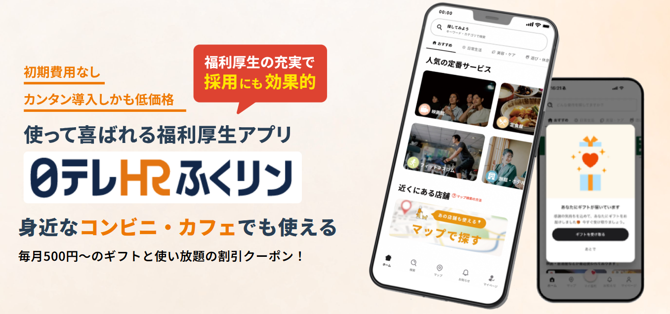 カンタン導入しかも低価格、従業員にギフトも送れる福利厚生アプリ【日テレHRふくリン】