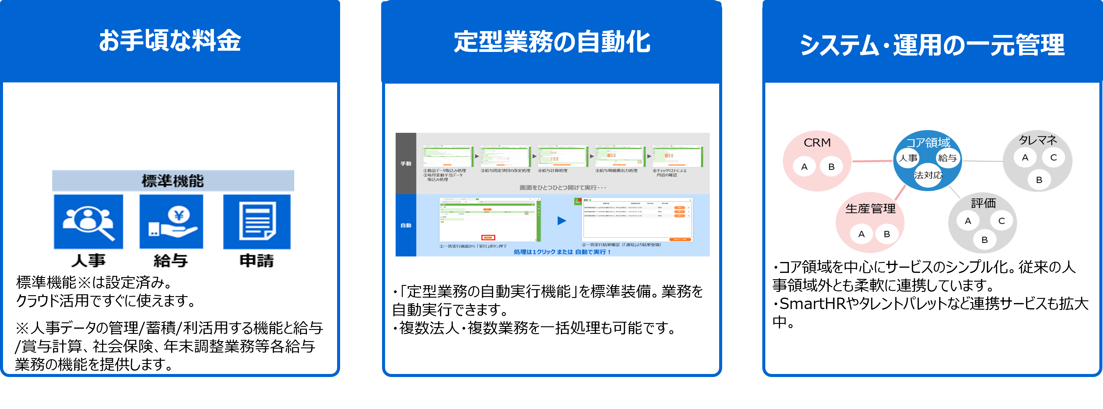 | 対応範囲 | 法改正対応既存システムとの連携対応 |