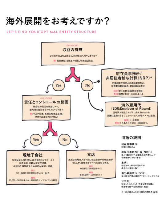 海外進出は大きな決断であり、どの形態で拠点を設立するかは、今後のすべてのステップに影響を与える重要な判断です。
