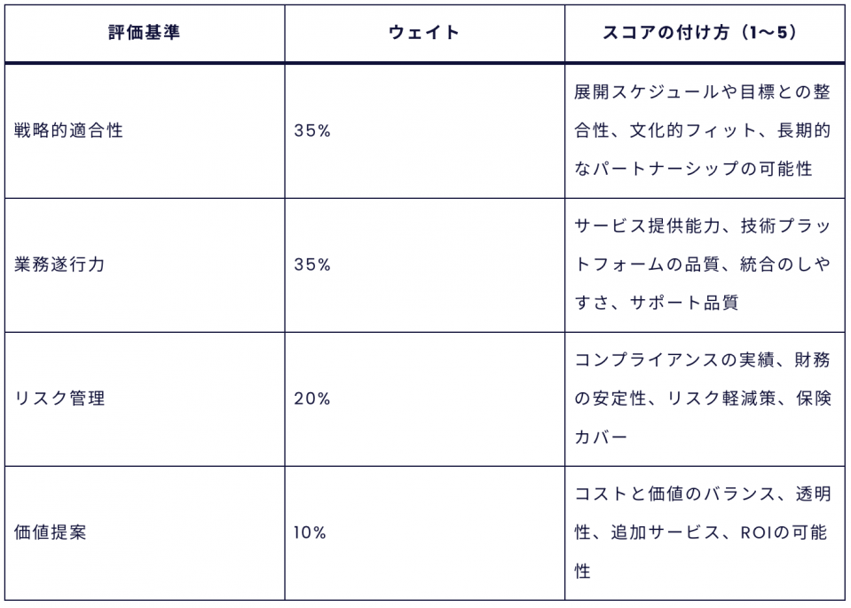 - スコアカードを用いて潜在的なパートナーを客観的に比較する