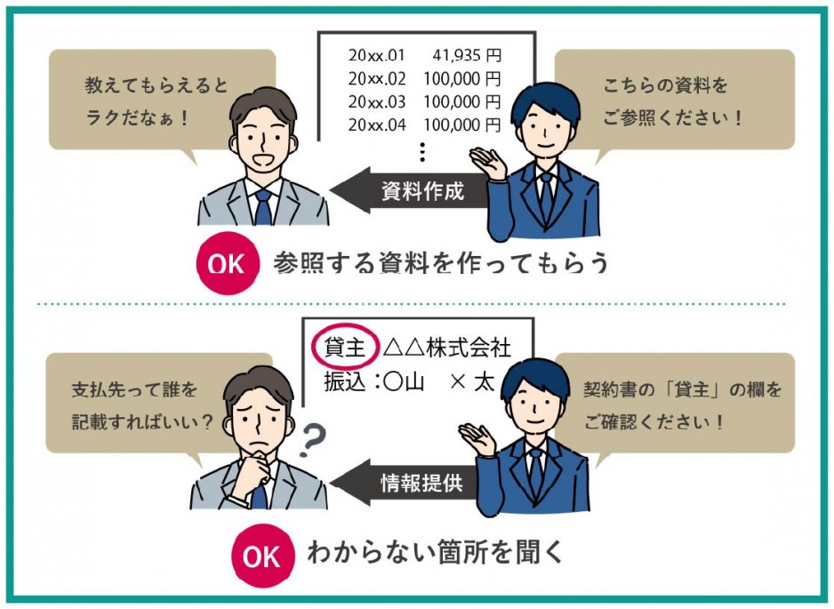 - 記載内容の不明点を質問する(例:「貸主」欄には管理会社と物件所有者どちらを記載すればいいのか)