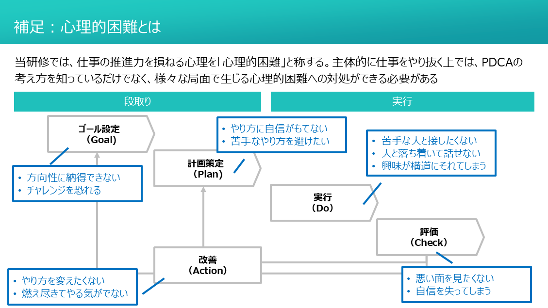 仕事の進め方がわかっていても、心理的困難を乗り越えられなければ、成果につながっていきません。たとえば、次のような心理的困難が起きがちです。
