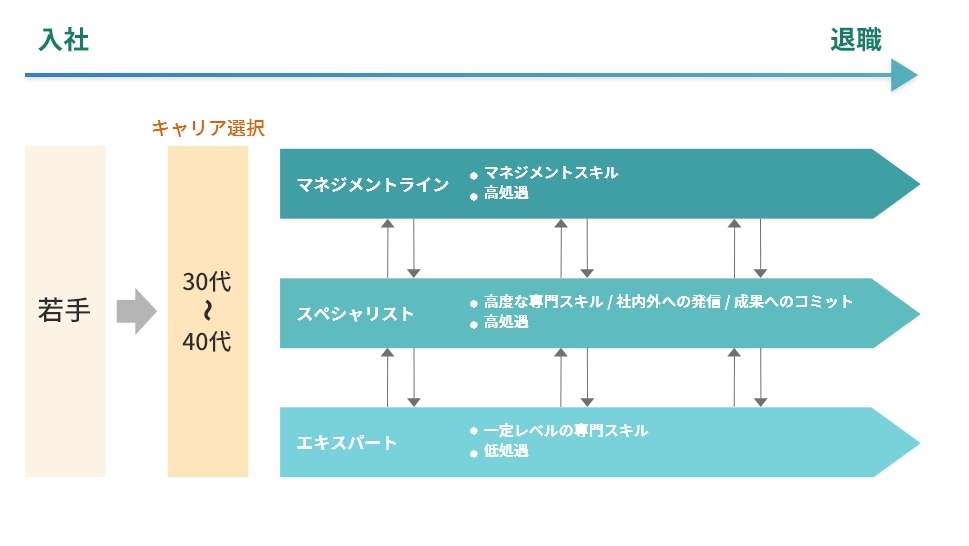 高処遇ではないが、一定のパフォーマンスを生み出すことを前提に安定した処遇と、ストレスなく自分の仕事に打ち込むことを保障したスペシャリスト用のライン