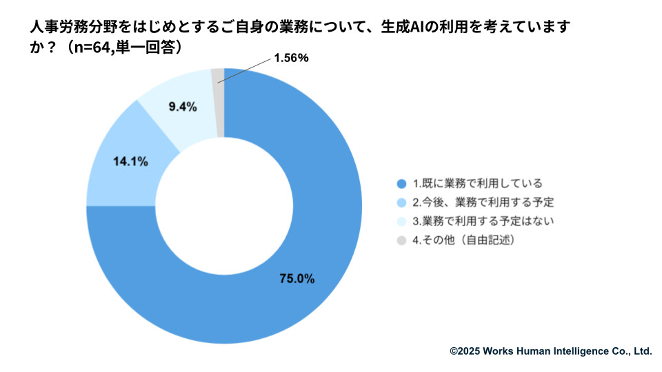 WHI総研が行った調査では、約9割の企業が「生成AIを人事労務分野ですでに利用している」または「近く利用予定」と回答。「人事労務分野での生成AI活用はまだ道半ば」と予測していましたが、現実はその想定を超えるスピードで進展しています。もはや「生成AIを導入していること自体」が珍しいことではなくなりました。