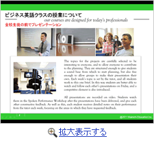 「ビジネス英語」の効果的なカリキュラムの一例としては、ビジネスパーソンをターゲットにするイギリスのある研修機関では、研修生は2週間に1度、全校生徒の前でプレゼンテーションを行います。最初は戸惑いもある英語でのプレゼンも、回数をこなしていくとボディランゲージを含め上達していきます。この様にカスタマイズされたプログラムにおいて、同じ境遇の企業人との他流試合から実践に近い形で授業が進行していくことは大変有益であります。